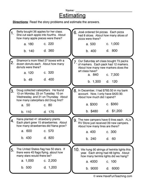 Math Word Problems Worksheets Pdf And Estimation Exercises Worksheets Are Here To Help Your Kids To Make Intuitive Judgments.